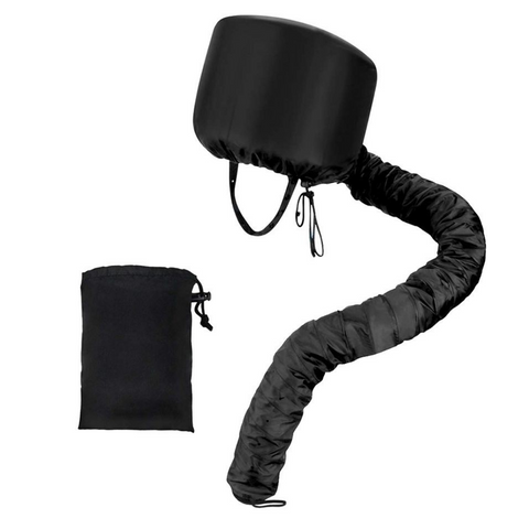 A soft hooded dryer attachment for at-home use with a blowdryer.